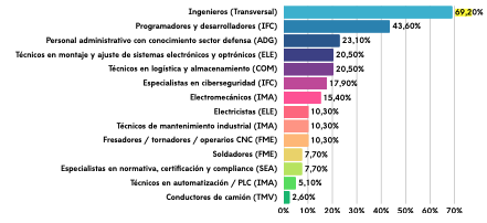 El estudio disecciona con precisión las necesidades del sector. Aunque la ingeniería (aeroespacial, industrial, telecomunicaciones) es el perfil más demandado (69,2% de las empresas), el verdadero cuello de botella se encuentra en la Formación Profesional. Los técnicos de mantenimiento industrial, electromecánicos, especialistas en montaje electrónico, soldadores, fresadores y operarios de CNC son el esqueleto operativo de la industria, y su ausencia se deja sentir con fuerza en los polígonos industriales de Getafe, el Corredor del Henares o Móstoles.