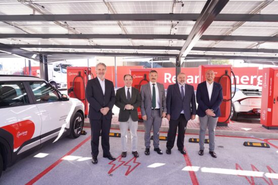 La estación utiliza energía 100 % renovable certificada en todas las recargas. Además, Acciona Energía ha instalado un conjunto de marquesinas con placas solares con una potencia de 150,42kWp, capaces de generar cerca de 200.000kWh al año y evitar la emisión de más de 54 toneladas de CO₂. Esta energía fotovoltaica contribuye directamente a las recargas de los vehículos y garantiza la autosuficiencia energética del edificio de servicios, que ofrece a los usuarios una zona de descanso equipada con máquinas de venta automática y aseos.